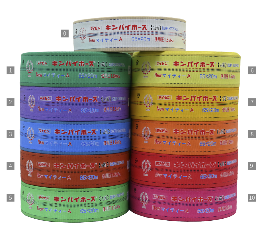 キンパイホースはお客様のニーズにお応えし、より鮮やかなカラーホース「レインボー」を生み出しました。