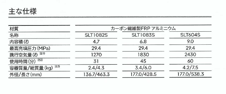 アルミニウム合金などの金属、または樹脂ででできた継ぎ目なしの円筒(ライナー)を内筒とし、その外側をエポキシ樹脂に含侵した炭素繊維やガラス繊維など高強度繊維で多層に巻き付けた構造を持つ、超軽量圧力容器です。万一の場合にも、破裂が起こらないように、ライナーからガス漏洩が先行し内圧を安全に低下させる構造(Leak Before Break構造)となっています。