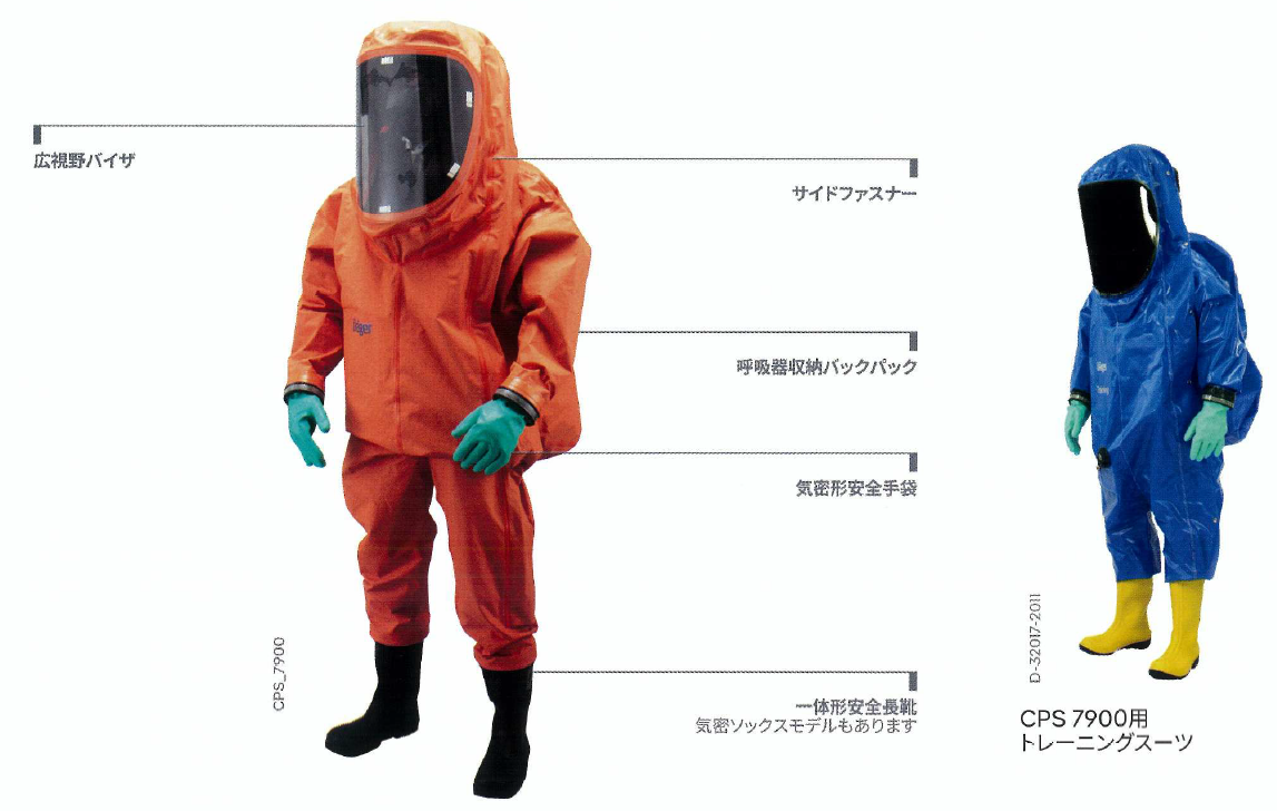 化学耐性、機械特性ともに最高レベルの性能を誇る陽圧式気密服で、未知ガス災害時の検知、救助、危険排除活動等に適しています。 オプション装備のDコネクトを利用すると、救助用資機材やガス検知器等を腰元に吊り下げて携行することができます。