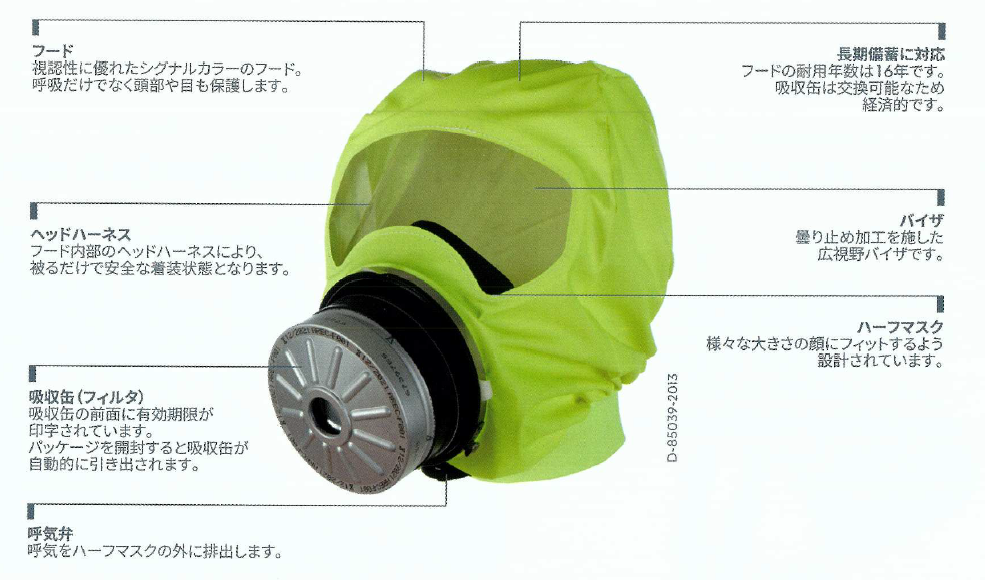 粉塵、有毒ガス、熱気から要救助者の頭部や呼吸を保護します。