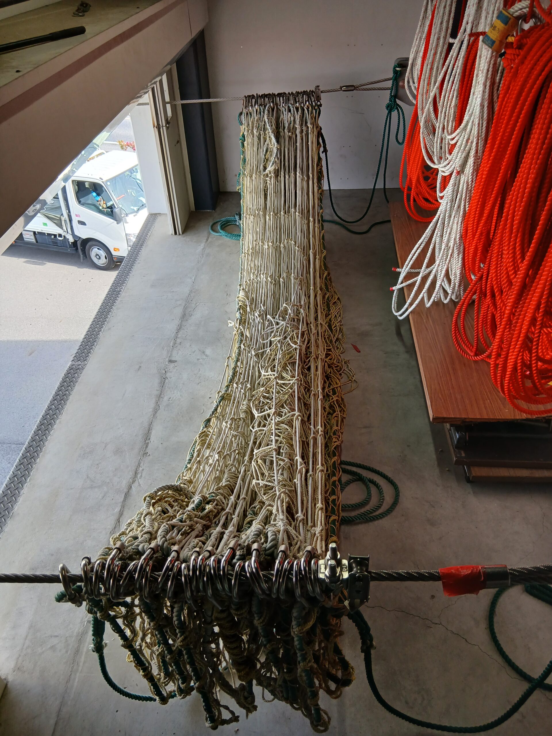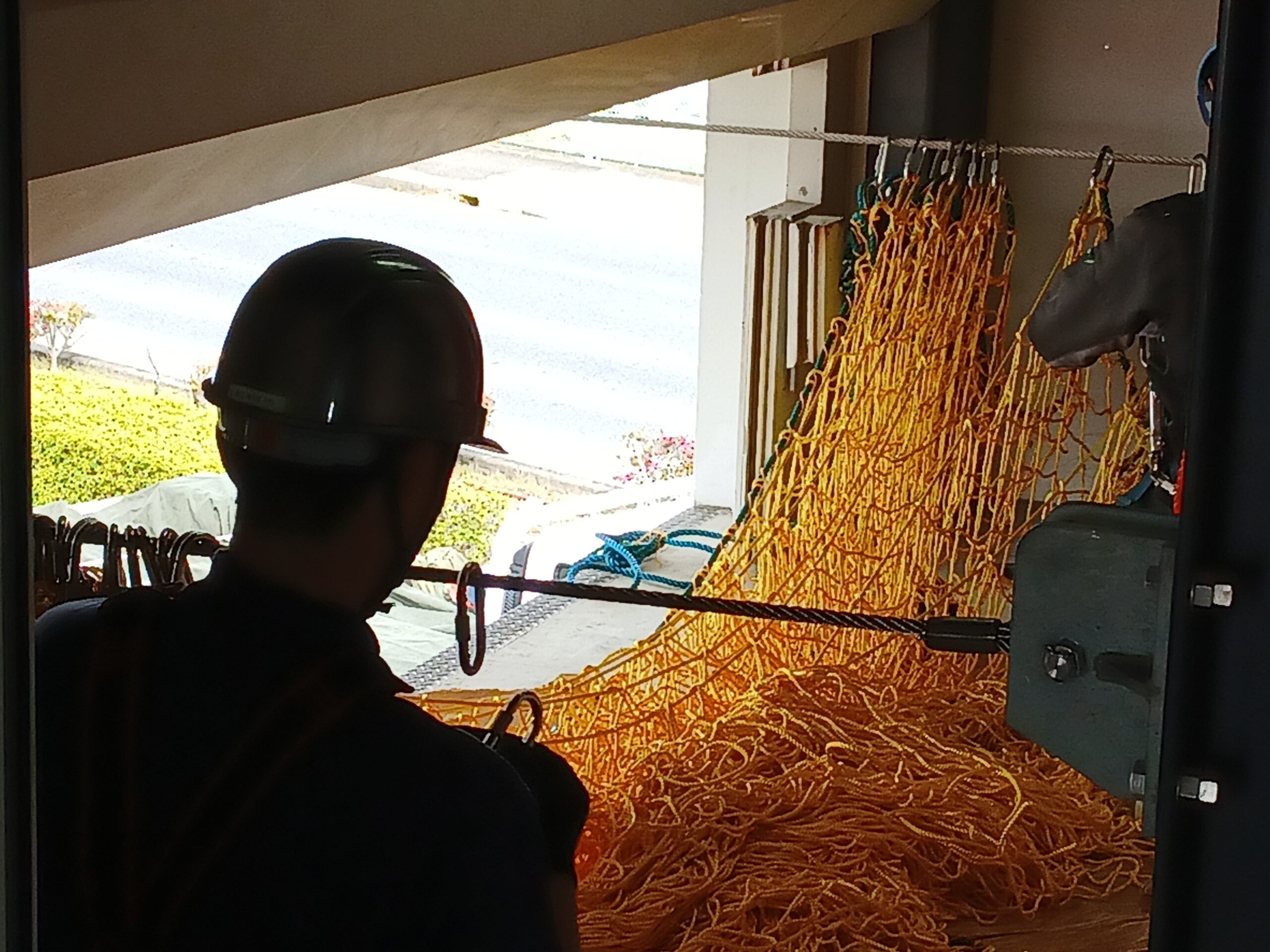 導入から年数が経っている救助用安全ネットの張替え対応を行いました。 ・導入ネット:東京製綱製安全ネット ※東京製綱製安全ネットは標準で残存強度試験用のネット構成ロープが含まれていますので、5年後、10年後と残存強度試験を行うことで訓練時の安全を担保することができます。